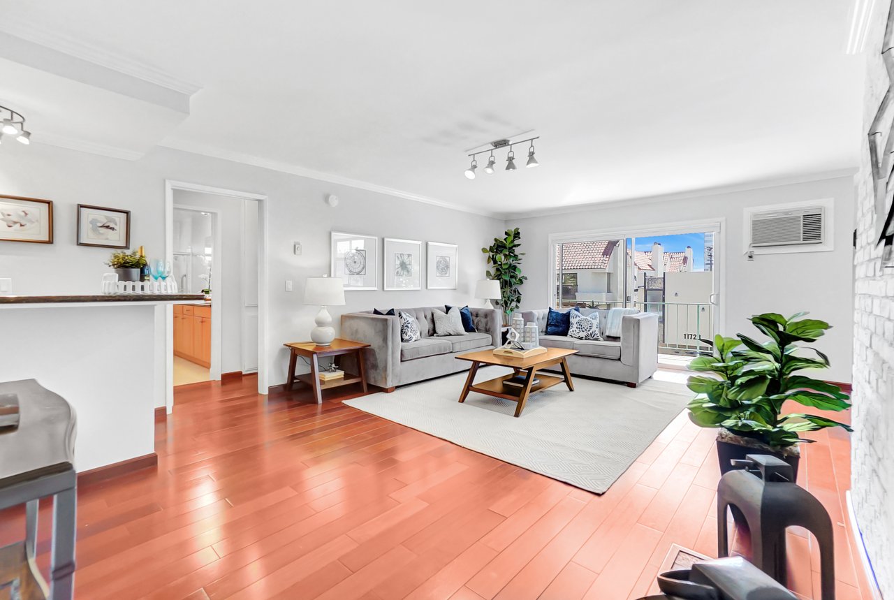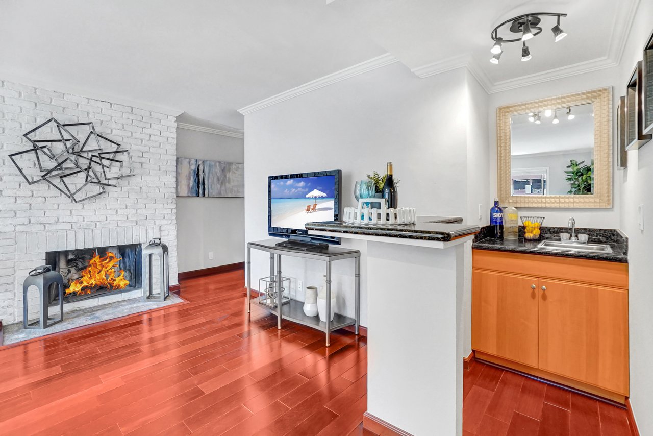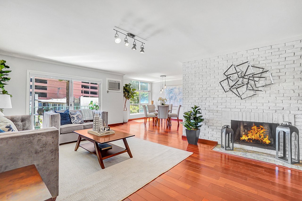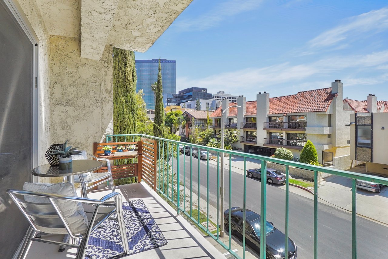 Welcome home to a beautiful Brentwood condo in the heart of it all! This bright and spacious home keeps closing to UCLA, Westwood, the Getty Museum, Santa Monica Beach, the hottest part of San Vicente Blvd with great restaurants, boutique stores and so much more. This is one of the few front-facing units that offers large windows providing continual natural light throughout the day on a safe quiet tree-lined street. You’ll enter into a formal foyer prior to turning the corner to a warm and inviting large living area with a fireplace and a custom built-in bar. The floor plan is great for entertaining as you can enjoy your friends and family from either the living room or the dining room with the kitchen just a peek around the corner. This well-maintained home provides hardwood floors throughout, stainless steel appliances, quartz countertops, and an abundance of storage. Retreat into your bedroom large enough for any king-size bed and a home office if needed. Or come home and relax on your private balcony and enjoy cool California nights as the sunsets. There are so many wonderful details that you will have to just come to see it for yourself.