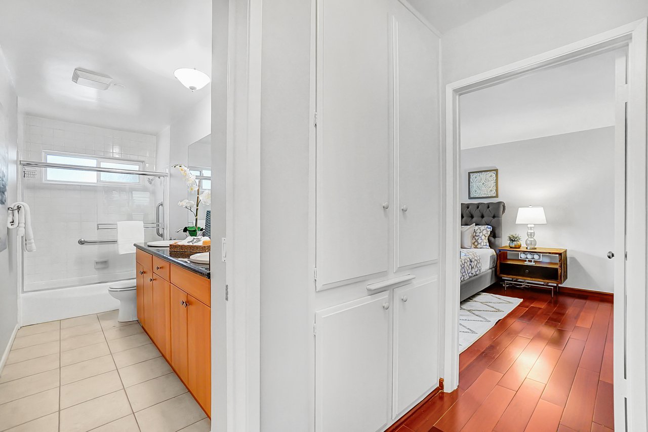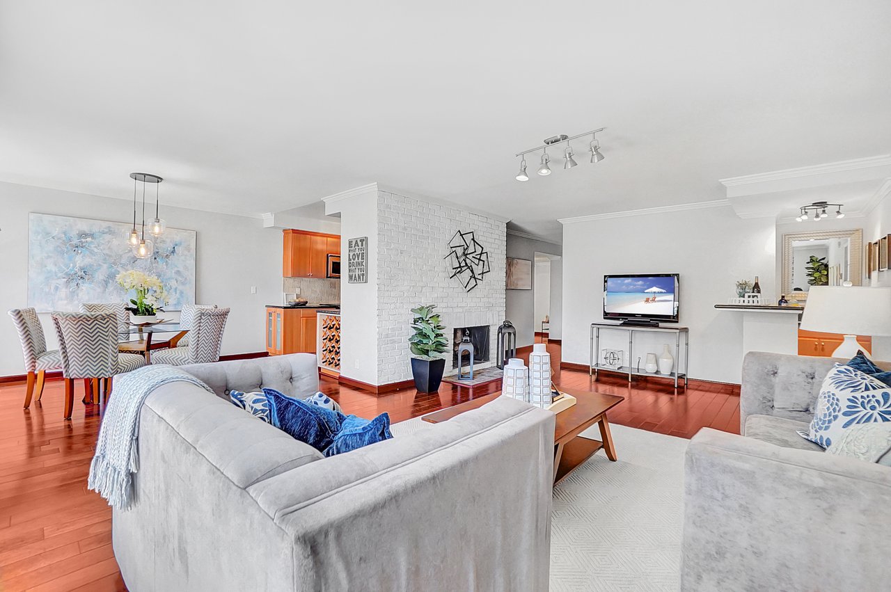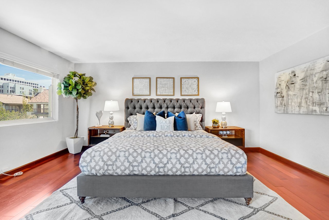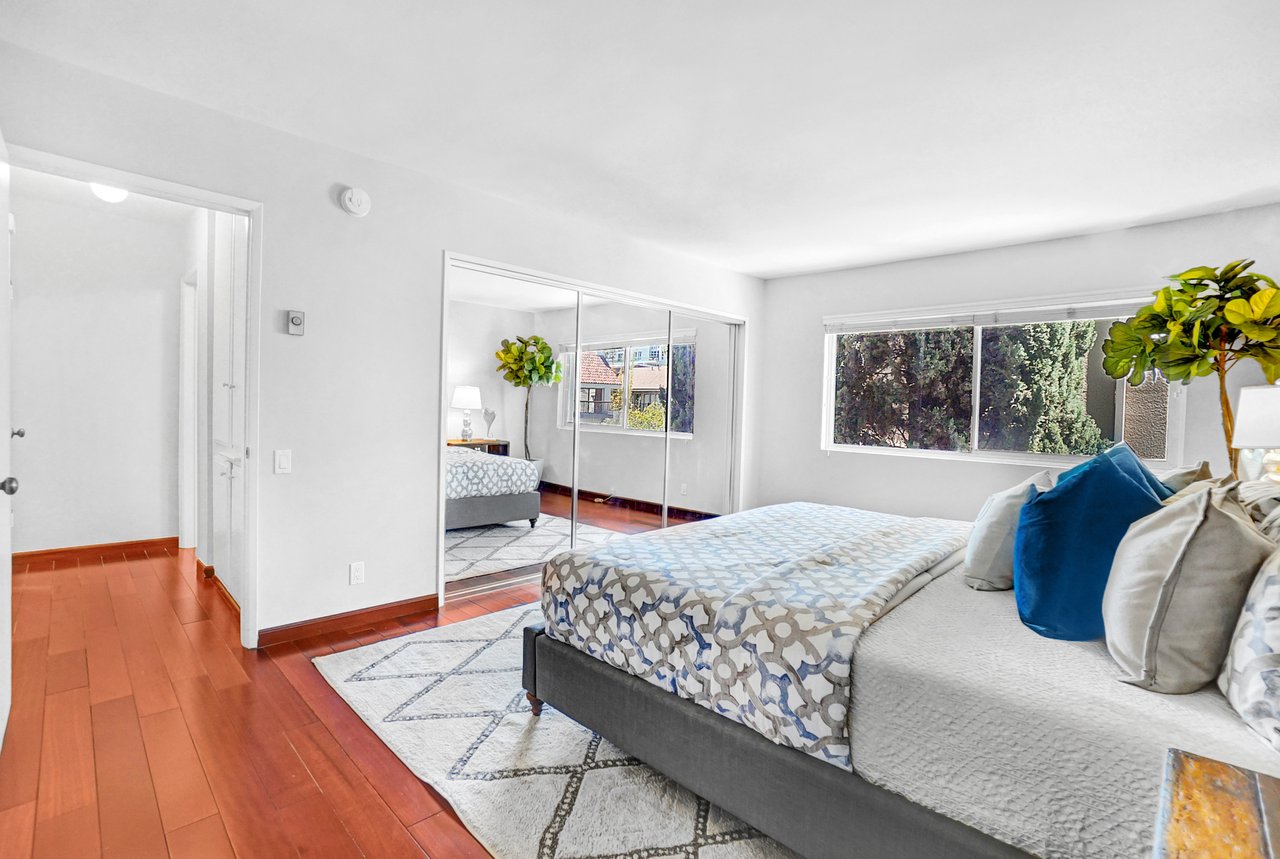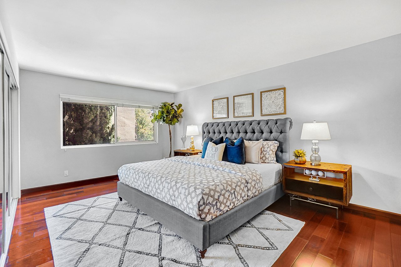 Welcome home to a beautiful Brentwood condo in the heart of it all! This bright and spacious home keeps closing to UCLA, Westwood, the Getty Museum, Santa Monica Beach, the hottest part of San Vicente Blvd with great restaurants, boutique stores and so much more. This is one of the few front-facing units that offers large windows providing continual natural light throughout the day on a safe quiet tree-lined street. You’ll enter into a formal foyer prior to turning the corner to a warm and inviting large living area with a fireplace and a custom built-in bar. The floor plan is great for entertaining as you can enjoy your friends and family from either the living room or the dining room with the kitchen just a peek around the corner. This well-maintained home provides hardwood floors throughout, stainless steel appliances, quartz countertops, and an abundance of storage. Retreat into your bedroom large enough for any king-size bed and a home office if needed. Or come home and relax on your private balcony and enjoy cool California nights as the sunsets. There are so many wonderful details that you will have to just come to see it for yourself.
