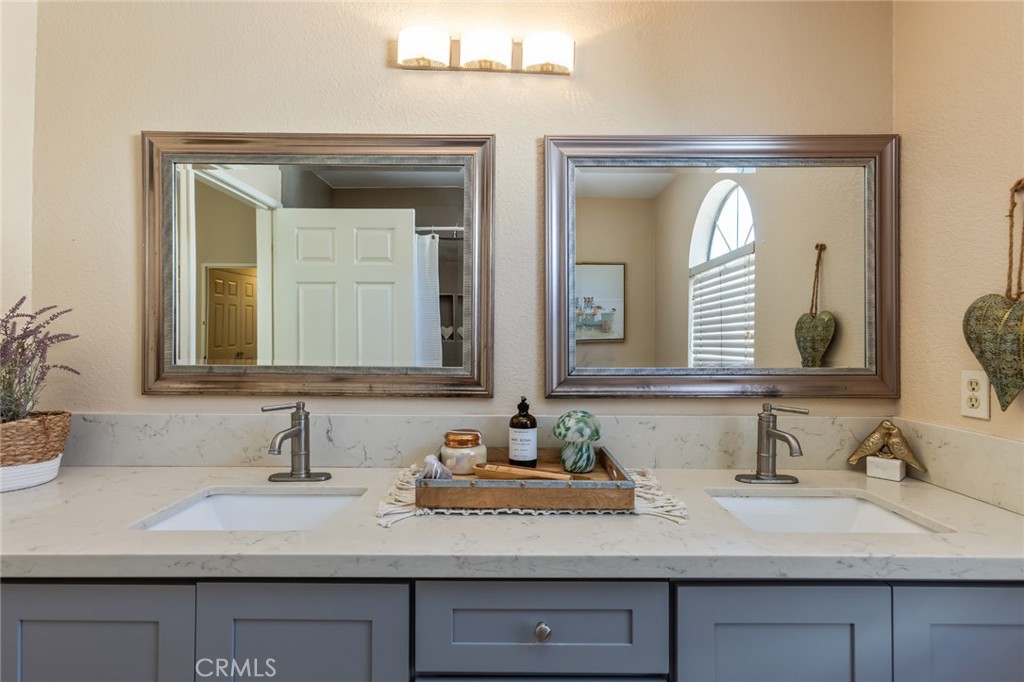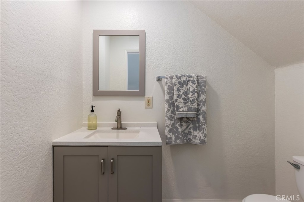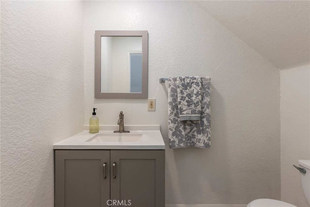 The open-concept living and dining areas flow seamlessly, while all three bedrooms are located upstairs, providing privacy and separation from the main living spaces. The primary suite features a dual-sink vanity en-suite bath, and a walk-in closet space. The two additional bedrooms are generously sized and ideal for guests or a home office.