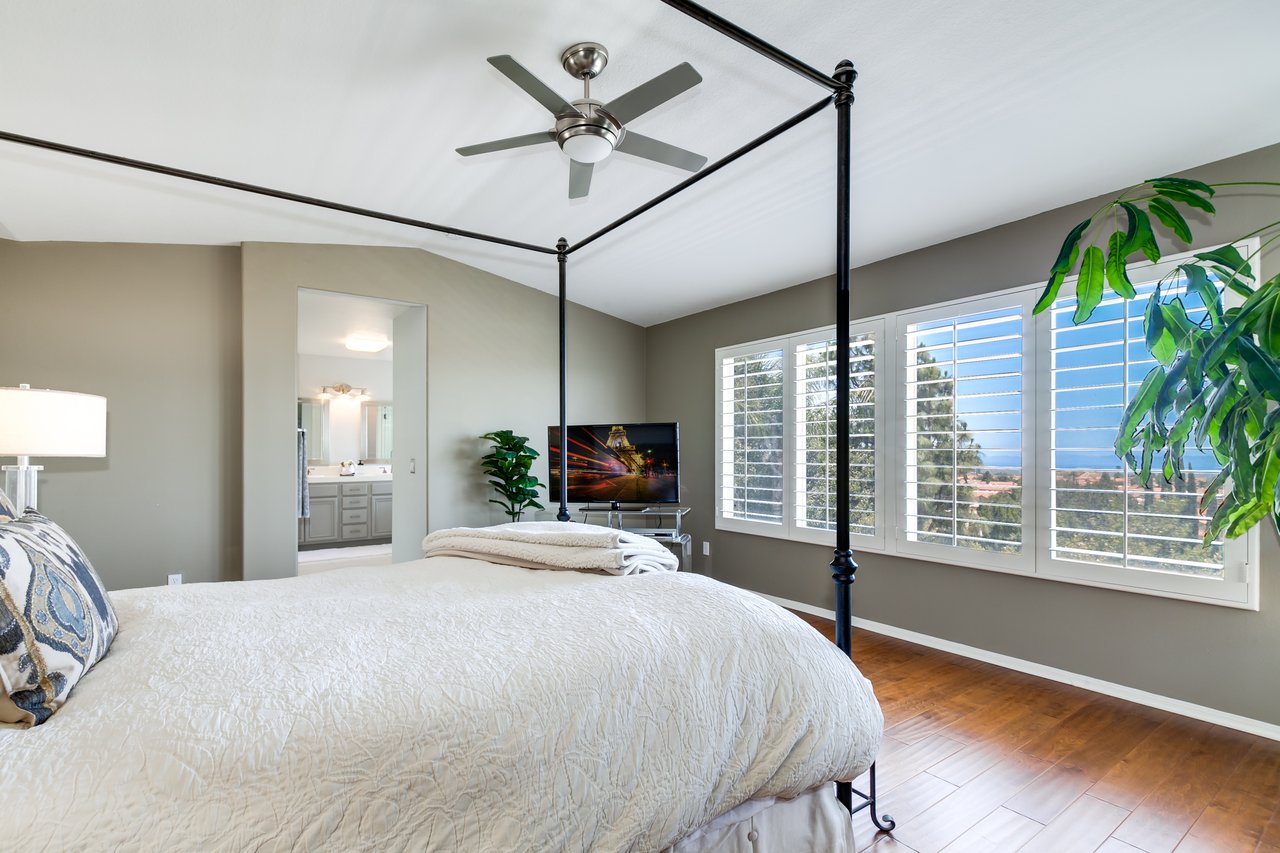 GORGEOUS home in an exclusive gated community boasting incredible mountain views and sweeping panoramic views of the city! This home is located in the limited section of the Highlands community with only 29 other neighbors with every street a cul-de-sac. As you walk into this elegant home, you are greeted with an abundance of light from 2-story windows featuring the living room and formal dining room area with recessed lighting. Never miss out on great family moments as you prepare meals in the open concept kitchen and family room area. The kitchen offers stainless steel appliances, a built in microwave, and a center island. The family room has a great steady flow of natural light, built-in shelves, and a cozy fireplace with both rooms allowing you to take in the city lights at night. Through sliding doors, you’ll access your beautiful backyard that includes a perfectly manicured zen garden, private jacuzzi and covered patio area. On the first floor, you will also find a great room for guest, an office and/or gym. Of the 4 bedrooms upstairs, featured is a grand master suite with an abundance of natural light and great views of the city. The ensuite offers deep his and her closets, double sinks, a great relaxing soaking tub, a walk-in shower, and more. Other wonderful features include plantation shutters throughout the entire home, hardwood floors, a brand new AC, a central vacuum system, a large 3 car garage…just to name a few. HOA amenities also include a pool, jacuzzi, tennis courts and a private gated entry. Close to numerous parks, Porter Ranch Town Center Shops, Porter Valley Country Club, a plethora of restaurants, shops, movie theaters and less than 10 minutes to the 118 FWY.