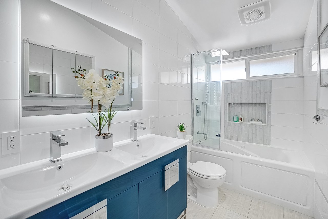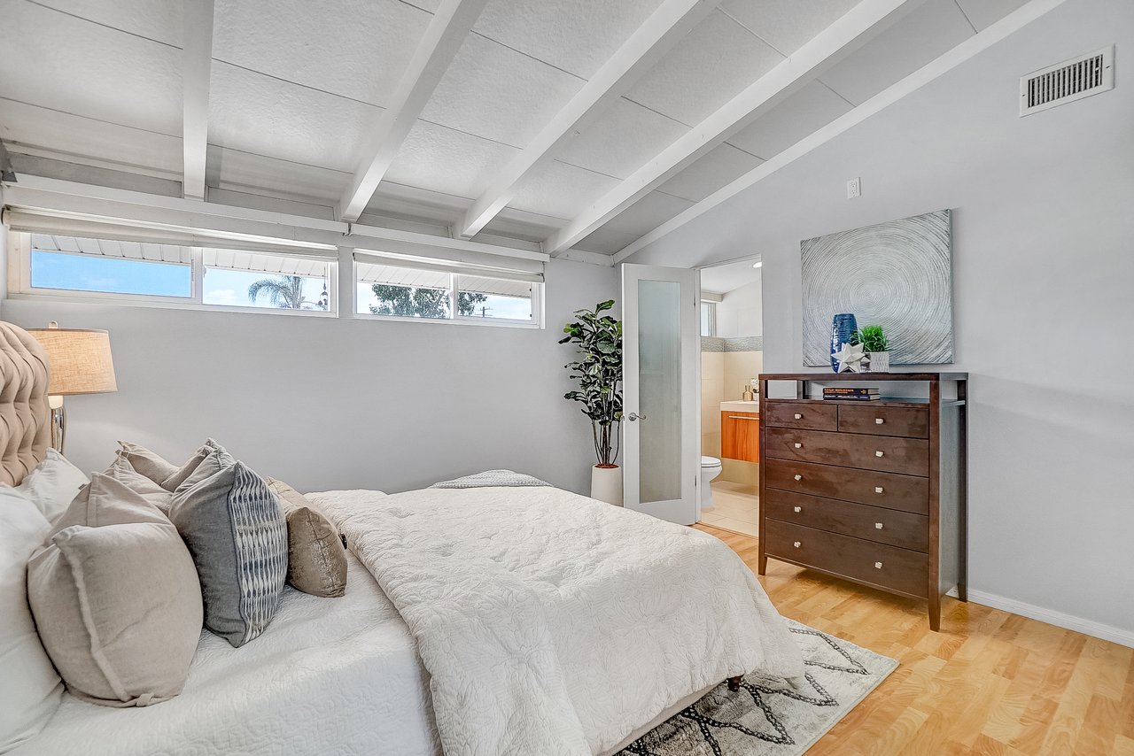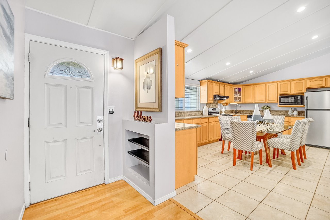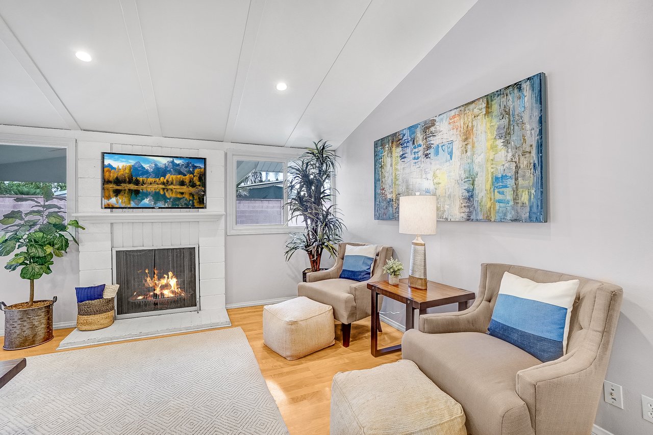 This charming home is recently renovated and move-in ready! The eat-in kitchen features long granite counters, tons of cabinet space, and a ceramic tiled floor. Vaulted ceilings and large windows are throughout the open concept kitchen/living room area that brings in great natural lighting to the house. While the living room boasts a classic gas fireplace and a corner office space with French doors that leads you out into the California room. The primary bedroom shines with high windows along the wall, perfect for letting the morning light in, and connects to a resort-style en-suite bathroom with delicate tile accents, a floating sink, and a walk-in shower with easy-to-maintain glass doors. Two additional bedrooms share a full bathroom with an extra-deep jacuzzi tub and double sinks to keep everyone happy. This chic bathroom will surely remind you of your favorite 5 stars hotel. The oversized covered California room is waiting for you in the backyard with plenty of open grass space. This is the perfect backyard to entertain family and friends all year round. The front of the home offers an extra-wide fenced-in driveway which is great for a big family with multiple cars and RV parking. Located nearby Costco, Target, shopping centers, restaurants, and Disneyland. The opportunities are endless, from a family home to a rental home, this charmer is a must see!!!