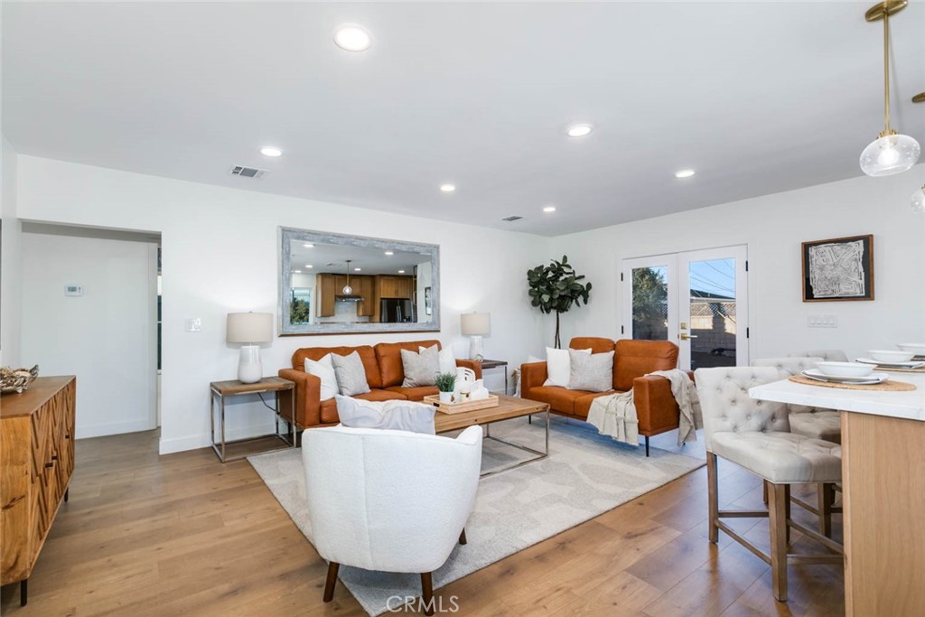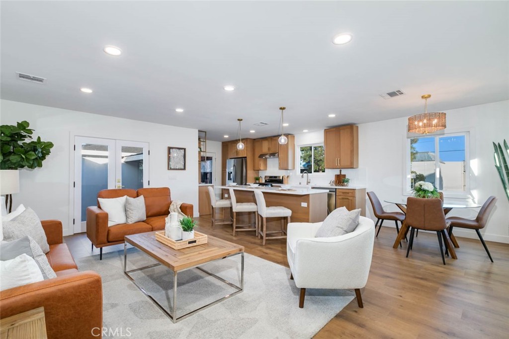 Welcome to this stunning home in the heart of central Torrance, where timeless charm meets modern luxury. Situated on a desirable corner lot, this beautifully remodeled home is a true gem. From the moment you step inside, you'll be captivated by the open-concept design, seamlessly blending the spacious living room, dining area, and chef-inspired kitchen. The large counter bar seating is perfect for entertaining, while double French doors flood the space with natural light and offer easy access to the inviting backyard.